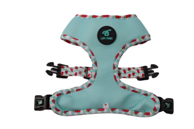 The Watermelon harness – because your pup deserves to be sweet and stylish all year long! 🍉 On one side, it’s a juicy mix of watermelon lollipops, perfect for those late-summer walks when your dog is feeling fruity. Flip it over, and you've got a cool, solid blue – ideal for when your furry friend wants to show off their mellow, laid-back side. Whether your dog’s serving up sweet or chill vibes, the Watermelon has them covered! Two looks, one harness – and endless compliments